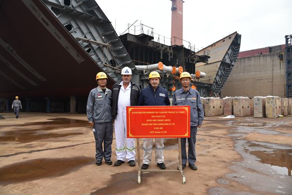 On October 16, the block erection for No.21 & No.22 111,000 DWT Oil Tankers was carried out successfully at NTS drydock. Our Assistant General Manager Mr. Ding Baiying and the representatives from the owner and the classification society attended this event.