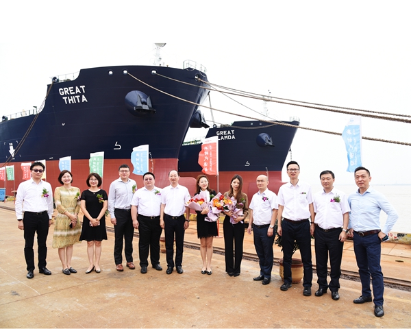 On September 10, 2020, we held naming ceremony for two units of 50,000 DWT Product Oil/ Chemical Tankers with Hull Nos.0305018/19 those were built for AVIC and charterered to Navig8. Our CEO Mr.Liu Haijin, Board Director Mr. Yuan Heng, Executive General Manger Mr. Zhang Yuyong, Deputy general manager Mr. Zhu Hangang, Assistant General Manager Mr. Xu Zhenyu, and guests from AVIC: God mothers Miss Gu Liangyu and Ms.Zhou Wenjing, Vice President Mr. Li Jun, Deputy Manager of Shipping Division Mr.Yang Guangyi , Navig8 Chief Representative Mr. Gordon Shen and its site team manager Mr.Binod Kumar and KR General Manager of KR Shanghai Branch Mr.Park Joonhyun etc., were present at this ceremony.