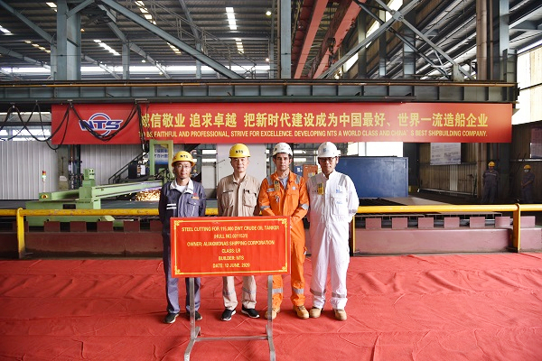On June 12, 2020, the steel cutting of No.31 115,000 DWT Crude Oil Tanker has been carried out successfully by New Times Shipbuilding Co., Ltd.. Assistant General Manger Mr. Ding Baiying and representatives from the owner Chartworld and LR classification society attended this event.