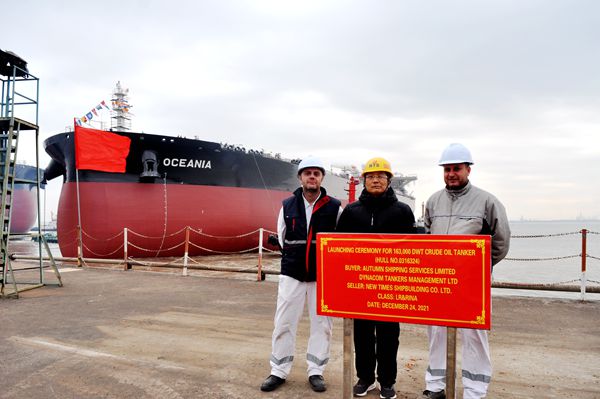 On December 24, 2021, the launching ceremony of two units of 163,000 DWT Crude Oil Tankers with Hull Nos.0316323 and 0316324 has been carried out successfully by New Times Shipbuilding Co., Ltd. Our CEO Liu Haijin, Executive Deputy General Manager Mr. Zhang Yuyong and representatives from the owner DYNACOM site office, BV, LR and RINA Classification Societies attended and witnessed the ceremony together.