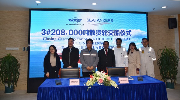 On January 6, 2020, the closing ceremony for 3# 208,000 DWT Bulk Carrier was held at the meeting room on 8th floor of New Times Office Building. Our Executive General Manger Mr. Zhang Yuyong, FRONTLINE site manager Mr.Caeiro, and LR site manager Mr.Kim attended this ceremony. The vessel was smoothly and successfully delivered by us and accepted by the Buyer.