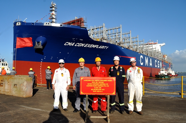 On August 3, 2023, the launching ceremony of two units of 7,000 TEU Container Vessels bearing builder's hull no.0207002 and 0207005 has been carried out successfully by New Times Shipbuilding Co., Ltd. The representatives from EPS site team and ABS classification society attended and witnessed the ceremony together.
