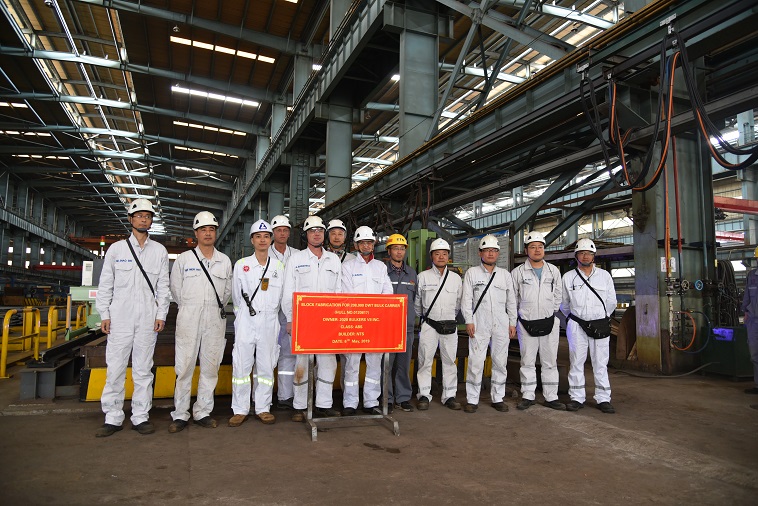 On 6 May, 2019, the block fabrication of No.17 208,000DWT Bulk Carrier was carried out at the cutting workshop of NTS. Our General Manager Assistant Mr. Ding Baiying and representatives from the owner 2020 Bulkers and ABS classification society attended this event.