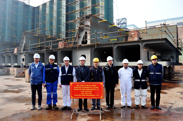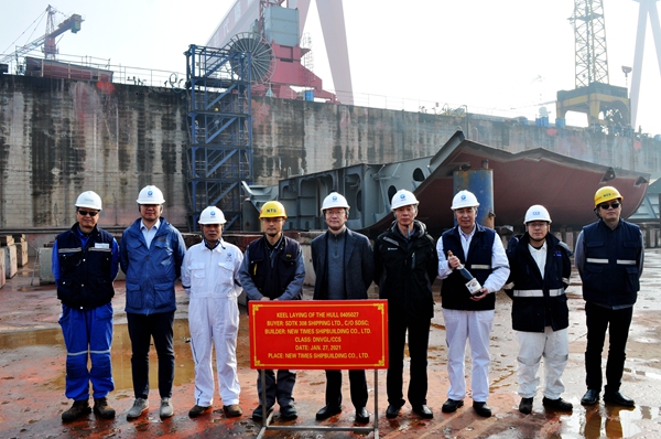 On January 28, 2021 , the Keel Laying Ceremony of four units of 50,000 DWT Product Oil/Chemical Tankers (IMO Type 2) with Hull Nos.0405024/25/26/27 has been carried out successfully by New Times Shipbuilding Co., Ltd. Our Deputy General Manager Mr.Zhu Hangang and representatives from the owner, DNV-GL Class and CCS Class attended and witnessed the ceremony together.