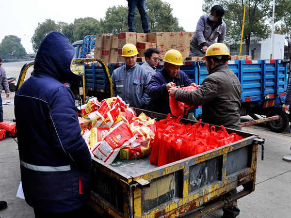 1月25日,公司慰問團帶著一輛輛裝著慰問物資的車輛,分赴生產一線部門,對留靖過年的外省籍員工進行慰問,將現金紅包、購物卡、口罩及油、米、花生、糕點等送到每一位留靖過年的外省籍員工手中,并祝大家工作順利、生活愉快,過一個祥和美滿的農歷虎年春節(jié)。