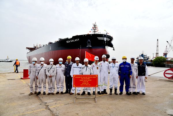 下午1:00,公司西區(qū)2#塢區(qū)域,新建船舶55#156500噸油船漂浮在船塢內(nèi),盛裝待發(fā)。隨著下水準(zhǔn)備工作就緒,海事拖輪持續(xù)發(fā)力,55#156500噸油船緩緩駛離船塢,停靠至舾裝碼頭,下水大節(jié)點(diǎn)如期實(shí)現(xiàn)。董事長(zhǎng)袁凱飛、總經(jīng)理劉海金與船東希臘Seaworld公司代表、ABS船級(jí)社代表一起到現(xiàn)場(chǎng)觀看船舶下水過程。