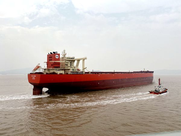 此次交付的首船325000噸超大型礦砂船是公司承接的6艘訂單中的一艘。該型超大型礦砂船總長340米,垂線間長333.1米,船寬62米,船深29.5米,結(jié)構(gòu)吃水21.4米,載重32.5萬噸,入KR船級社。系列325000噸超大型礦砂船正在陸續(xù)建造中,第二艘己于10月24日建成下水,第三艘己于10月28日進(jìn)入船塢中合攏建造,其余船舶的船體分段零件正在預(yù)制中。