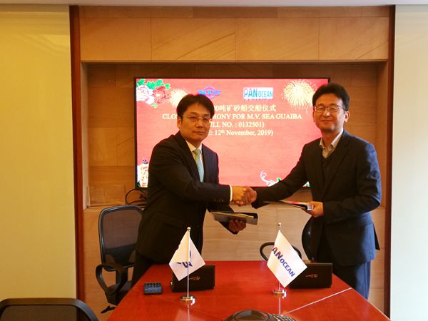 11月12日,公司在上海舉行簽字交船儀式,常務(wù)副總經(jīng)理張玉永與韓國船東泛洋海運(yùn)公司代表共同簽署交船文本,名為“SEA GUAIBA”號的325000噸超大型礦砂船正式交付船東。