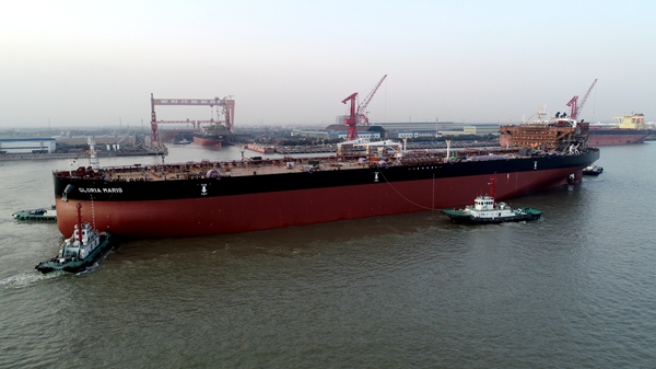 公司總經理劉海金、常務副總經理張玉永與希臘船東NGM、希臘船東Chartworld公司代表一起到現場觀看下水過程。