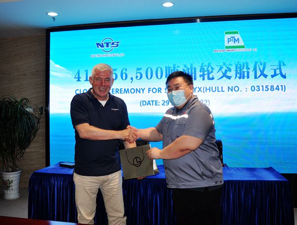 6月29日上午,公司在八樓會議室舉行船舶簽字交付儀式,41#156500噸油船成功交付希臘船東Pantheon Tankers公司運(yùn)營。
