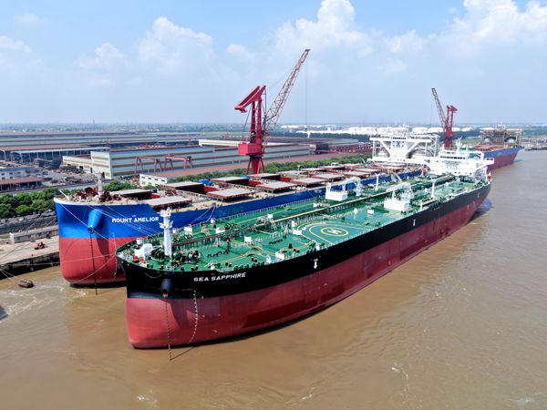 2日上午,公司常務(wù)副總經(jīng)理張玉永通過“云交付”儀式與船東希臘Seaworld公司簽署55#156500噸油船交船文本;下午,又與船東沙特BIHAR INTERNATIONAL COMPANY的代表簽署11#110000噸油船交船文本。3日上午,常務(wù)副總經(jīng)理張玉永與希臘船東Pantheon Tankers代表簽署42#156500噸油船交船文本,三艘油船成功交付船東運營。
