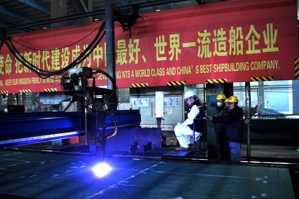 12月13日上午,公司在東區(qū)鋼加車間三跨舉行船舶開工點火儀式,7#8100箱雙燃料動力集裝箱船的船體結構件開始預制。生產管理部等相關部門負責人與船東CONGLOMERATE MARITIME LIMITED代表出席活動。