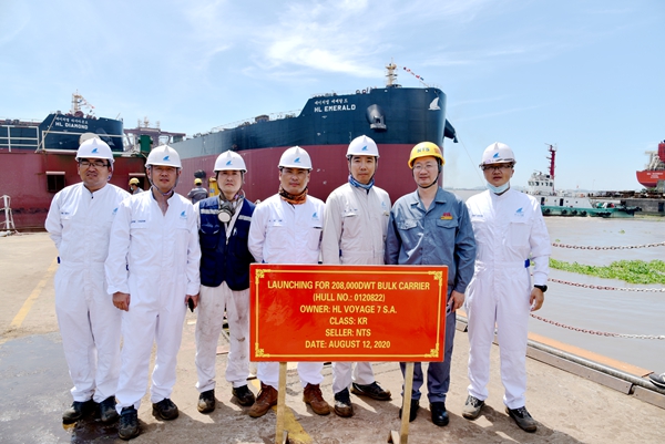 韓國船東H-Line Shipping Co., Ltd.在我們公司訂制了5艘208000噸散貨船,此次下水的是系列船中的第一艘和第二艘。