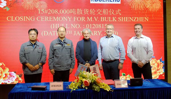 1月6日上午和下午,公司分別舉行簽字交船儀式,兩艘208000噸散貨船先后成功交付船東,分別是3#、15#208000噸散貨船,企業(yè)生產(chǎn)經(jīng)營開局喜人,新年首月就實(shí)現(xiàn)了交船“開門紅”。